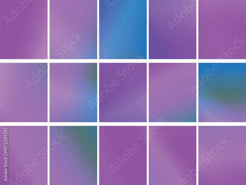 Fototapeta premium Assortment of vibrant purple gradient tiles, modern and colorful, abstract set