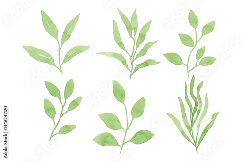 Naklejka premium Assortment of watercolor leaves illustration set - green leaf branches...