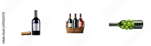© Maestro, Naklejka premium Assortment of wine bottles and grapes on transparent background, cut out