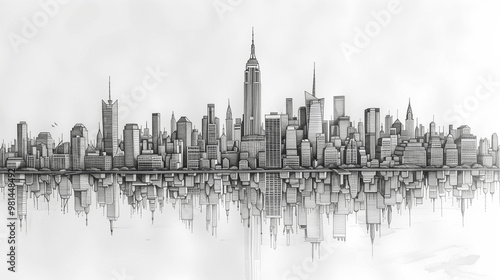 © astarte.ai, Naklejka premium astarte.ai: Continuous Line Art of Skyline City