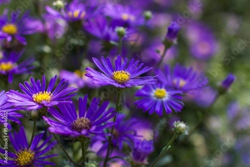 © Miroslawa Drozdowski, Fototapeta premium Aster amellus flowers - aster with dark purple blossoms