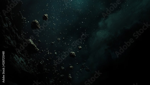 Fototapeta premium Asteroid field, space debris, nebula background, cosmic dust, science fiction backdrop