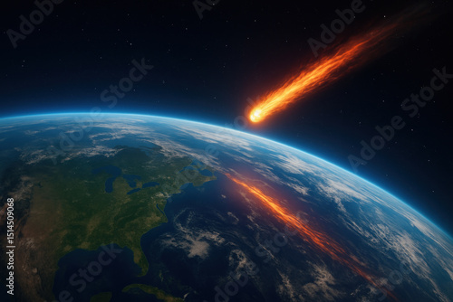 © Firuza, Obraz premium Asteroid hovering over Earth in clear view.