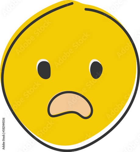 Fototapeta premium Astonished emoji. Shocked emoticon with gasping face. Hand drawn, flat style emoticon. Hand drawn, flat style emoticon.