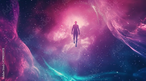 Obraz premium Astral body silhouette against abstract space backdrop embodies esoteric...
