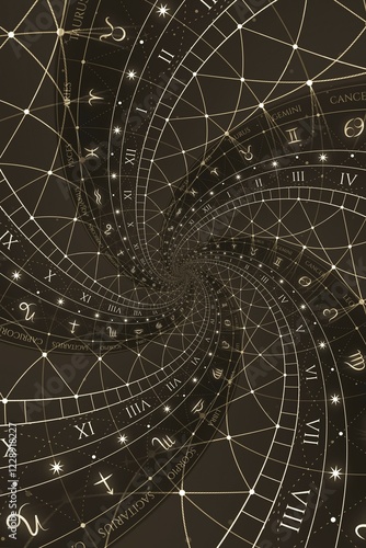© Paolo Gallo/imageBROKER, Obraz premium Astrological background with zodiac signs and symbol, black