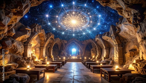 Fototapeta premium Astrological Cave Interior with Zodiac Constellation Ceiling.