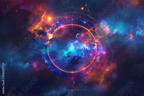 Fototapeta premium Astrological composition with empty starry sky for zodiac sign symbol