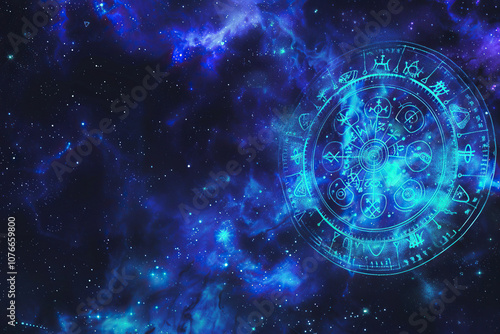 © Kateryna, Obraz premium Astrological composition with zodiac circle in signs and symbols