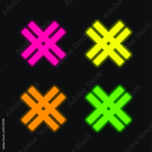 Obraz premium Astrological Hinduism Symbol four color glowing neon vector icon