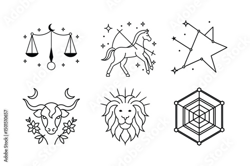 Fototapeta premium Astrological Symbols Outline – Horoscope Design Elements