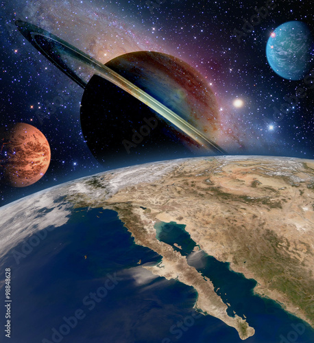 Fototapeta premium Astrology astronomy earth space solar system creation saturn planet milky way...
