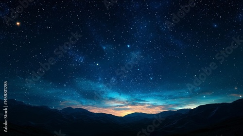 Fototapeta premium astrology, planetary alignment concept Starry night sky with constellations above mountain silhouettes.