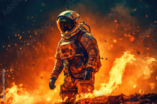 Fototapeta premium Astronaut burning on a planet