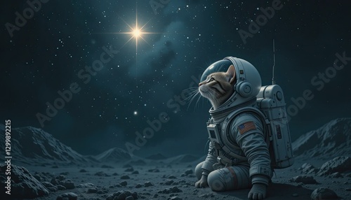 Fototapeta premium Astronaut cat exploring the moon fantasy art night sky cosmic adventure