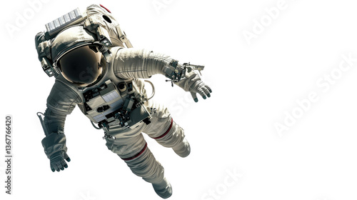 Fototapeta premium Astronaut Drifting: An astronaut in a pristine spacesuit floats gracefully...