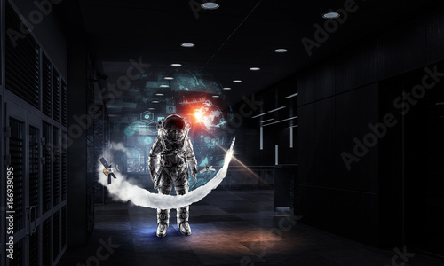 © Sergey Nivens, Naklejka premium Astronaut explorer in laboratory. Mixed media