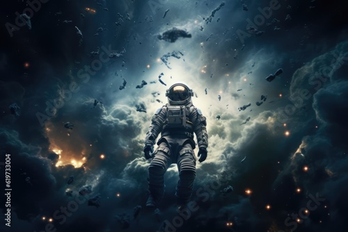 Fototapeta premium Astronaut exploring other worlds in outer space