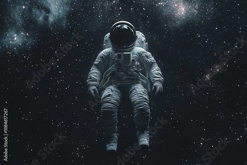 Fototapeta premium astronaut floating alone in a vast, dark universe, surrounded by twinkling stars