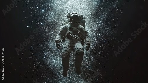© Zeeshan, Fototapeta premium Astronaut floating in outer space, Earth visible in the background