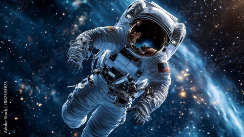 © Phatharaporn, Fototapeta premium Astronaut Floating in Space.