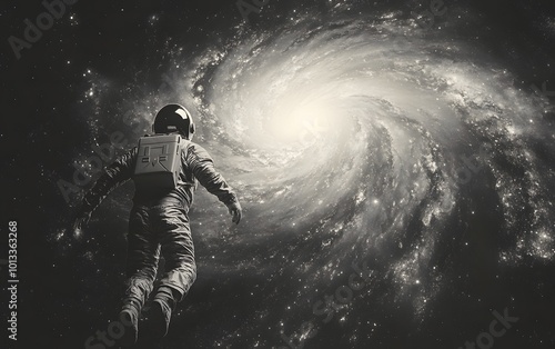 Fototapeta premium astronaut floating in space near swirling galaxy
