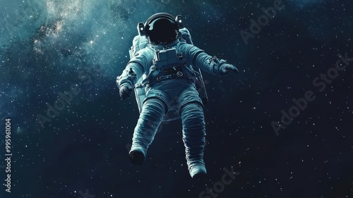 Fototapeta premium Astronaut Floating in Space with Starry Background
