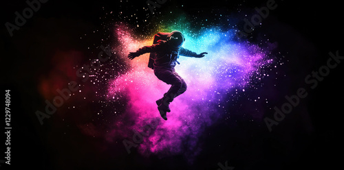 © Mahmud, Naklejka premium Astronaut Floating in Space with Vibrant Colorful Nebula - Cosmic Exploration Art