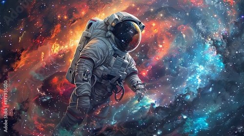Fototapeta premium Astronaut Floating in the Milky Way.