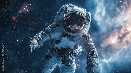 Fototapeta premium Astronaut Floating in Vast Expanse of Space: Surrounded by Stars and Cosmic...