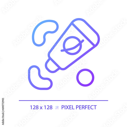 Naklejka premium Astronaut food pixel perfect gradient linear vector icon. Zero gravity. Space...