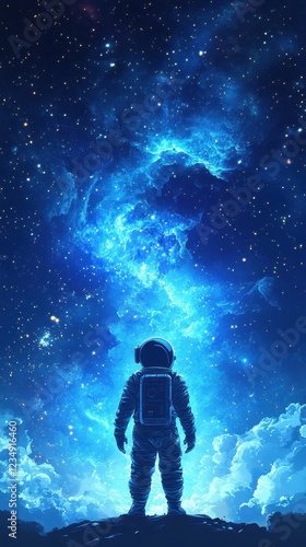© novian, Fototapeta premium Astronaut Gazing at a Celestial Nebula in Space