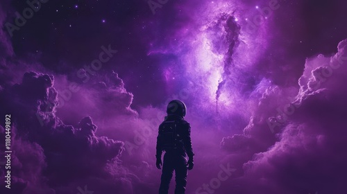 Obraz premium Astronaut Gazing at a Purple Nebula in Space