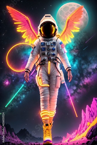 © Ai Art Vision, Fototapeta premium Astronaut in a Futuristic and Vibrantly Twisted Space Scene