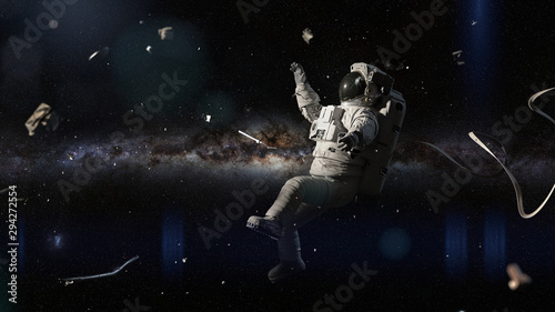 Fototapeta premium astronaut in distress, space debris in orbit of planet Earth