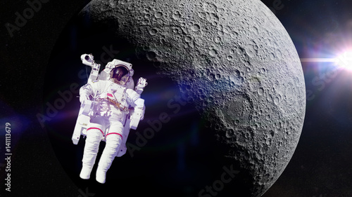 Obraz premium astronaut in front of the far side of the Moon (3d illustration, elements of...