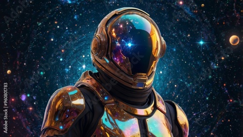 © Habibur Rahaman, Naklejka premium Astronaut in golden suit gazing at the stars.