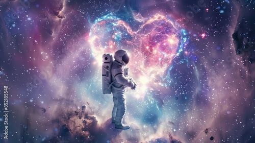 Obraz premium Astronaut in Heart-Shaped Cosmic Nebula