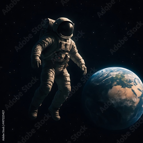 Fototapeta premium Astronaut in Space: Earth View, Cosmic Exploration