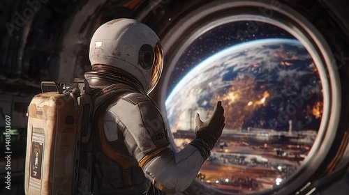 Fototapeta premium Astronaut observing earth from space station window