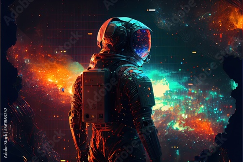 Fototapeta premium Astronaut on a futuristic background Sci fi colorful with Generative AI