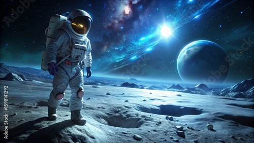 Obraz premium Astronaut on Moon Surface During Spacewalk at Night