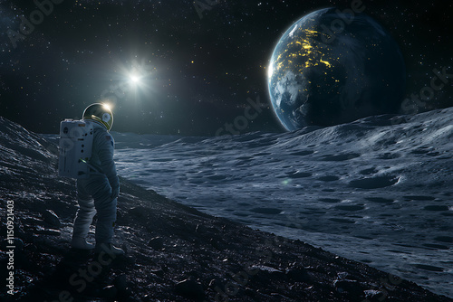© masud, Fototapeta premium Astronaut on the Moon Gazing at Earth