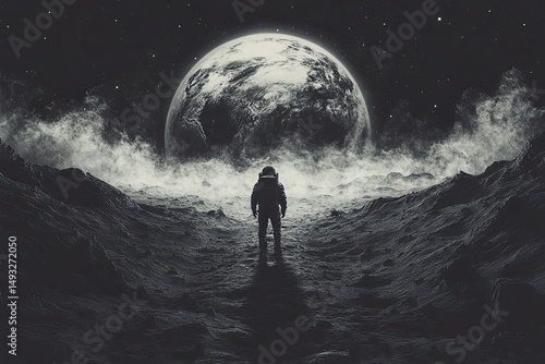 © Anatoll Paveel, Obraz premium Astronaut on the Moon. View of the Earth. Science Fiction.