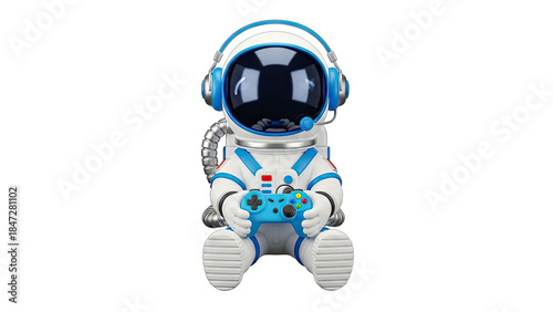 Fototapeta premium Astronaut Playing Video Games on White Background