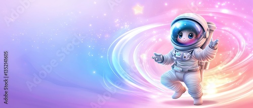 Fototapeta premium Astronaut relaxing in spa cosmic setting flat design illustration whimsical environment playful viewpoint