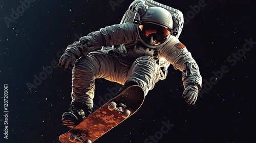 Fototapeta premium Astronaut Skateboarding Through Space During A Cosmic Ride