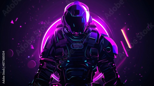 © Justin, Fototapeta premium Astronaut wearing space suit standing in front of neon circle