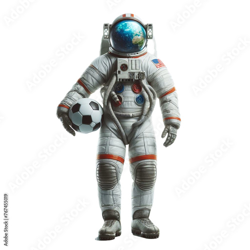 Fototapeta premium astronaut with ball isolated on transparent background 3d render - Generative AI