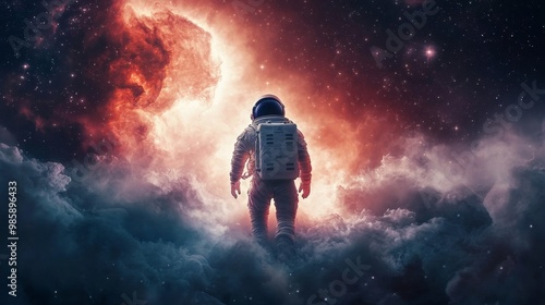 © stardadw007, Obraz premium Astronauts exploring spiral nebulae with constellations, space adventure, cosmic journey
